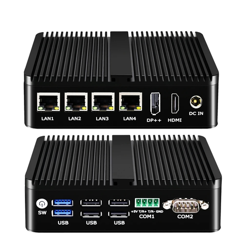 12GEN N100 อุตสาหกรรม Mini PC J4125 4 LAN 2.5G LAN 2 DDR4 ไฟร์วอลล์ Fanless 4 พอร์ต Ethernet มินิคอมพิวเตอร์ใหม่ UK ปลั๊ก SSD ฮาร์ด